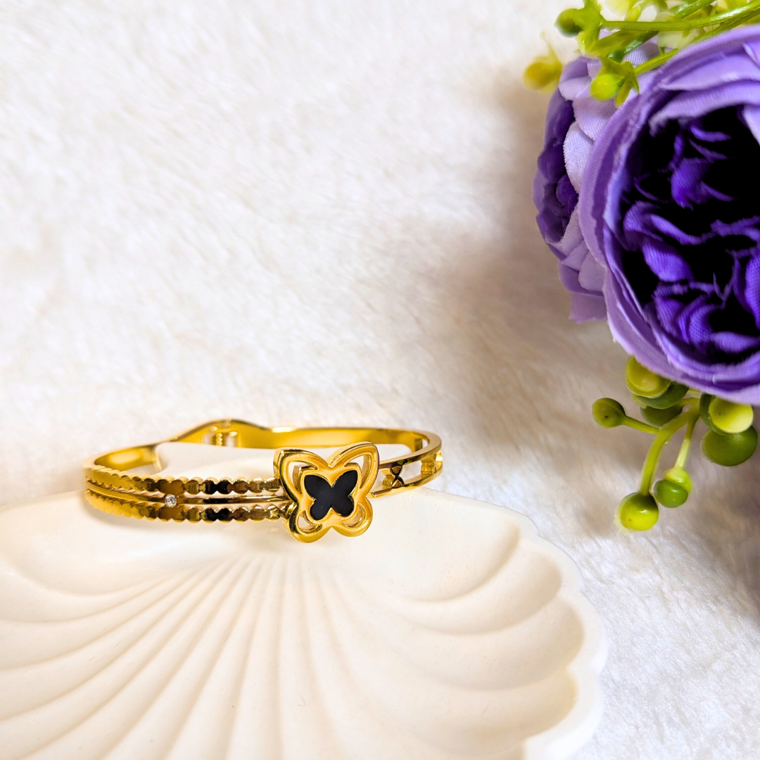 A charm of tradition, touched by elegance. The Butterfly Noir Kada combines the delicate symbolism of the butterfly with jet-black beads for a graceful statement. A perfect pick for modern mangalsutra vibes or standalone chic.