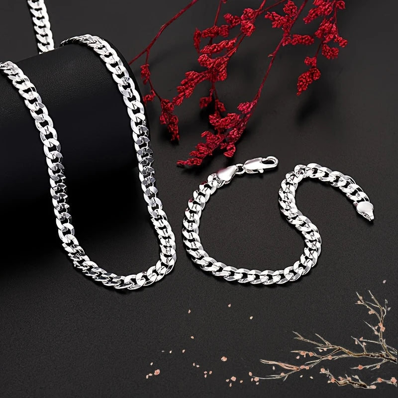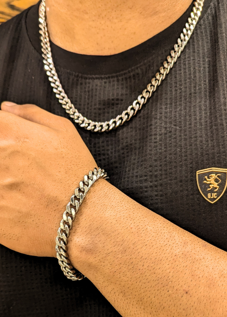 🔗 The everyday men’s silver Cuban chain and bracelet combo that elevates tees, hoodies, and night fits.